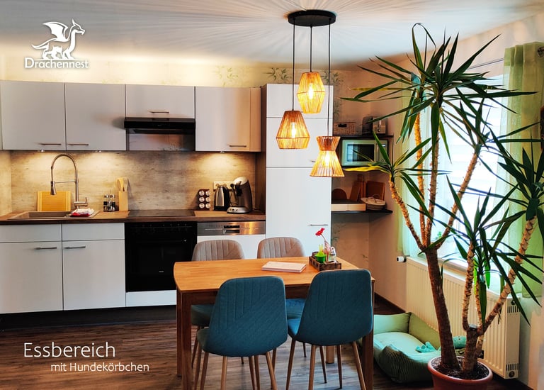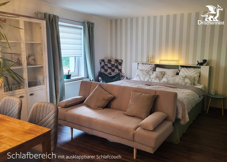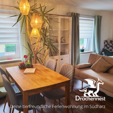 Wir bieten eine kleine, abgetrennte Wohnung zum Wohlfühlen, mit allem, was man für einen entspannten Urlaub braucht. Das Drachennest freut sich auf euch!